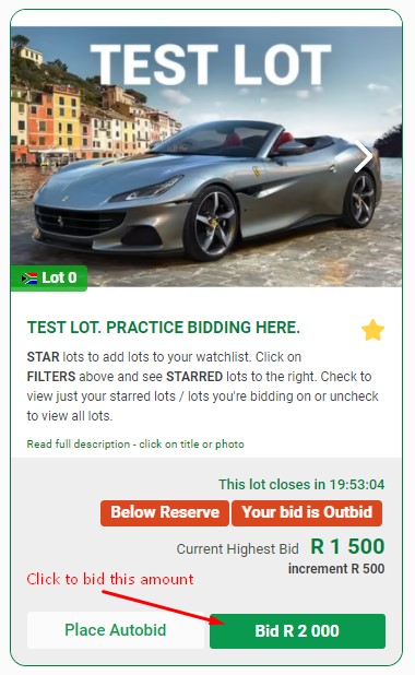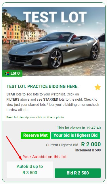 Once you place a bid, your bid status is shown. Your bid status updates if you are over reserve or outbid. You may be immediately outbid by another bidders Autobid.