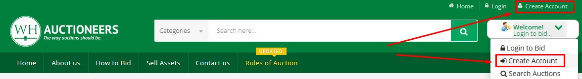 For every auction, you need to Register for bidding. Start on the whauctions.com homepage