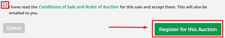Once logged in, you can register for any auction you want to bid one. Click on the 'Register for this Auction' link in the auction calendar on the homepage, or select the auction from the auction calendar and click on the green 'register' button on any item.